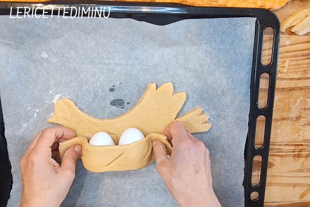 It’s clear that if we made a dove, we might insert two or even three eggs depending on its size, while on a chick, we will attach a single egg.