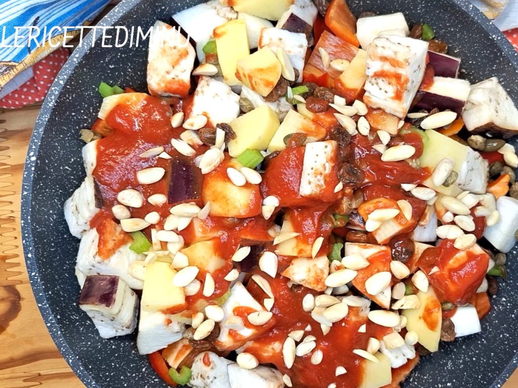 This caponata, like the traditional one, is excellent as an appetizer, as a side dish, or as a dinner-saving dish.