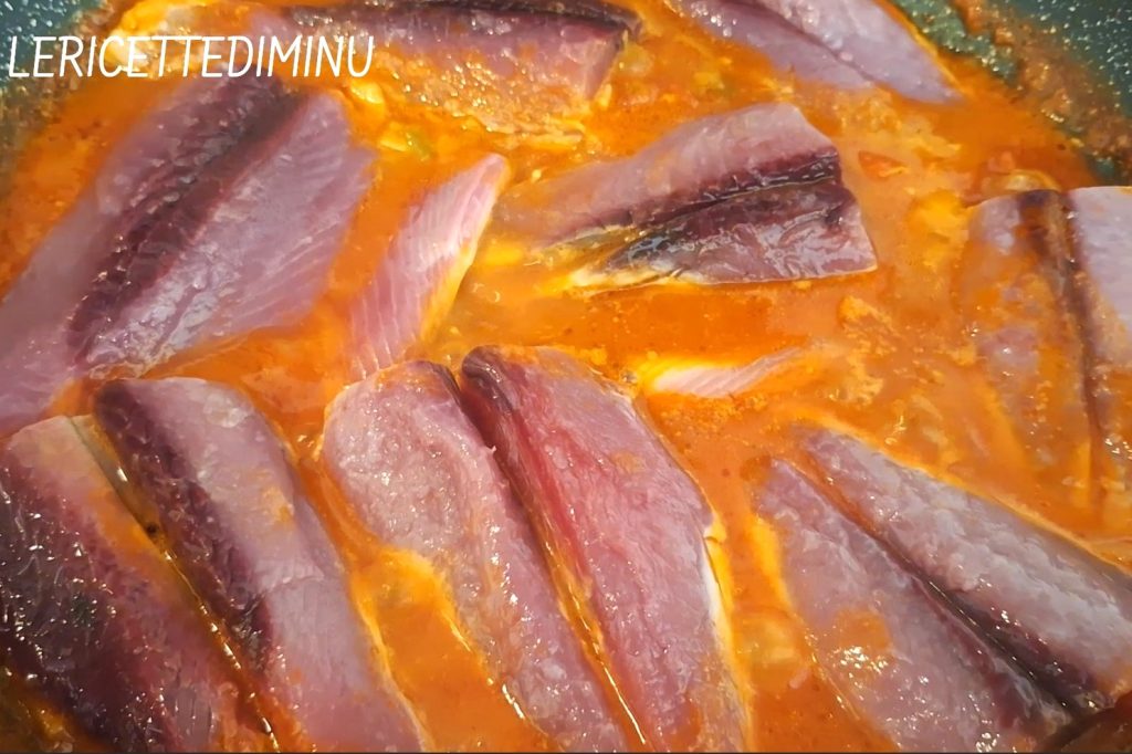 • The little tuna or frigate tuna stew with onions and tomatoes is now ready.