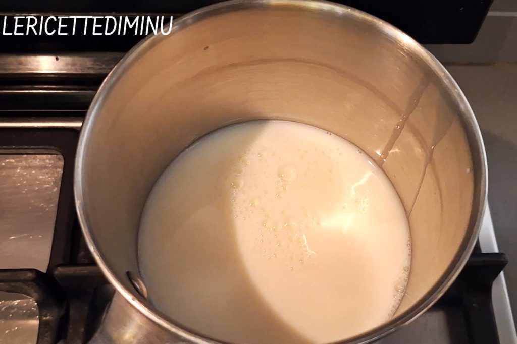Meanwhile, put the milk on the fire to warm, but turn off before it reaches a boil.
