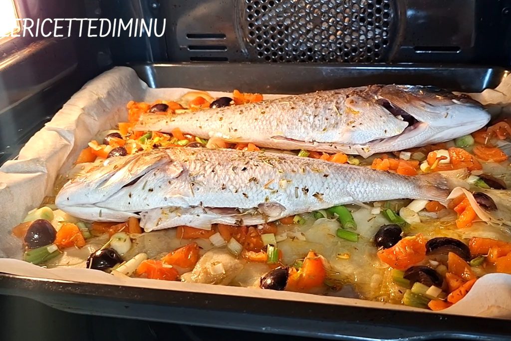 If, when opened, the fish appears completely white in the thickest part, it is cooked.