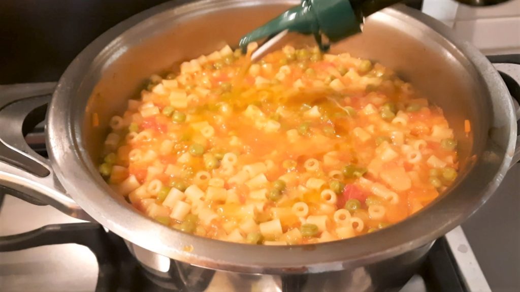 When the pasta is al dente, turn off the heat and season the soup with olive oil to taste and a couple of tablespoons of grated Grana cheese, stir.
