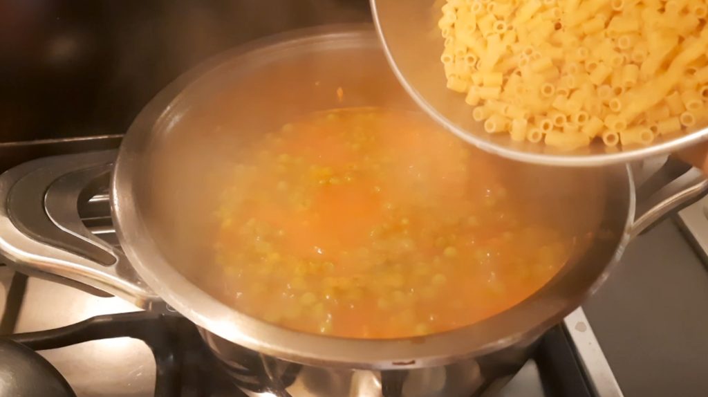 After about twenty minutes, add the pasta directly to the soup. Preferably use short pasta such as ditalini, snails, medium shells, or other of your choice.