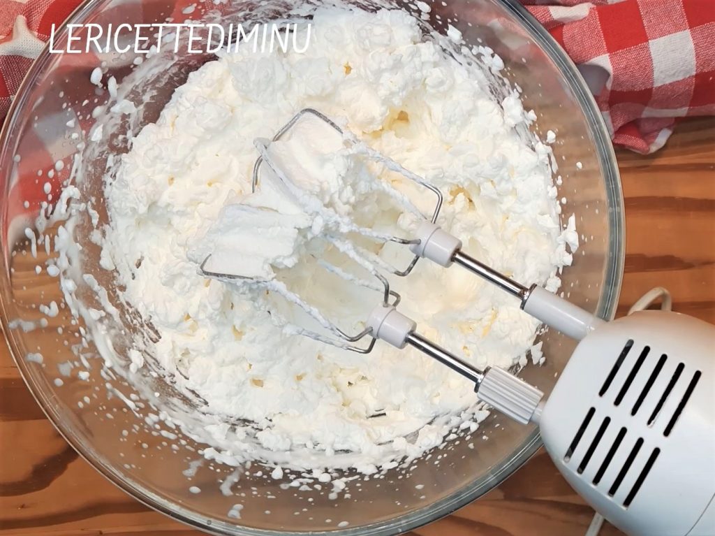 • At this point, add all the pistachio Nutella and 2 heaping tablespoons of whipped cream to the cream and work with electric whisks.