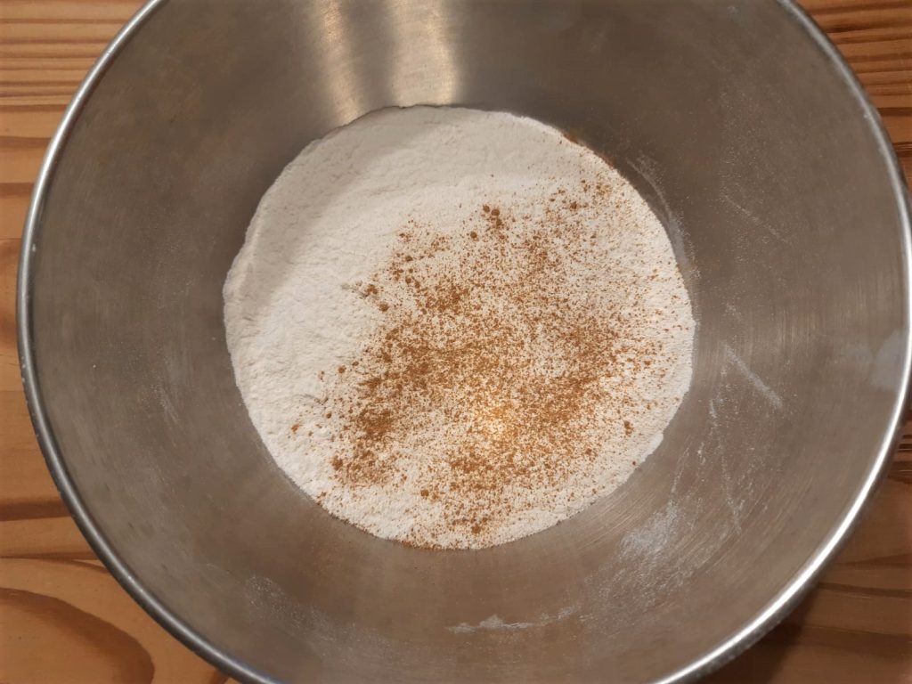 Then sift the flour into a large bowl and add ground cinnamon to taste.