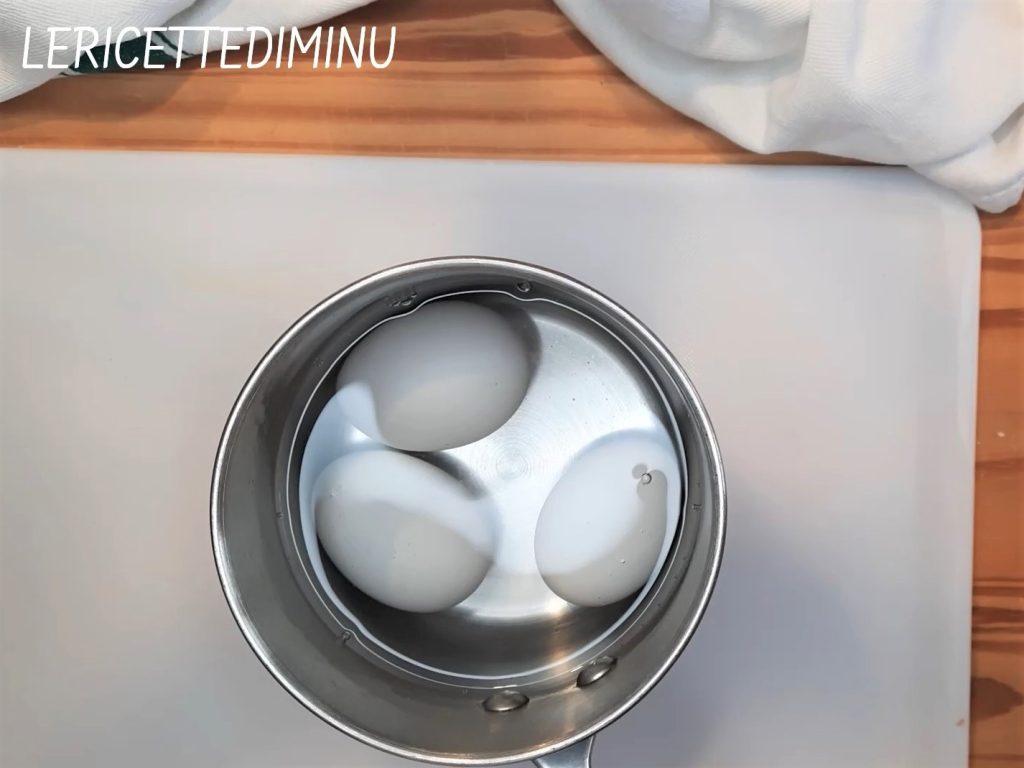 To prepare the Sicilian falsomagro, start by cooking 3 eggs for about 8 minutes from boiling.