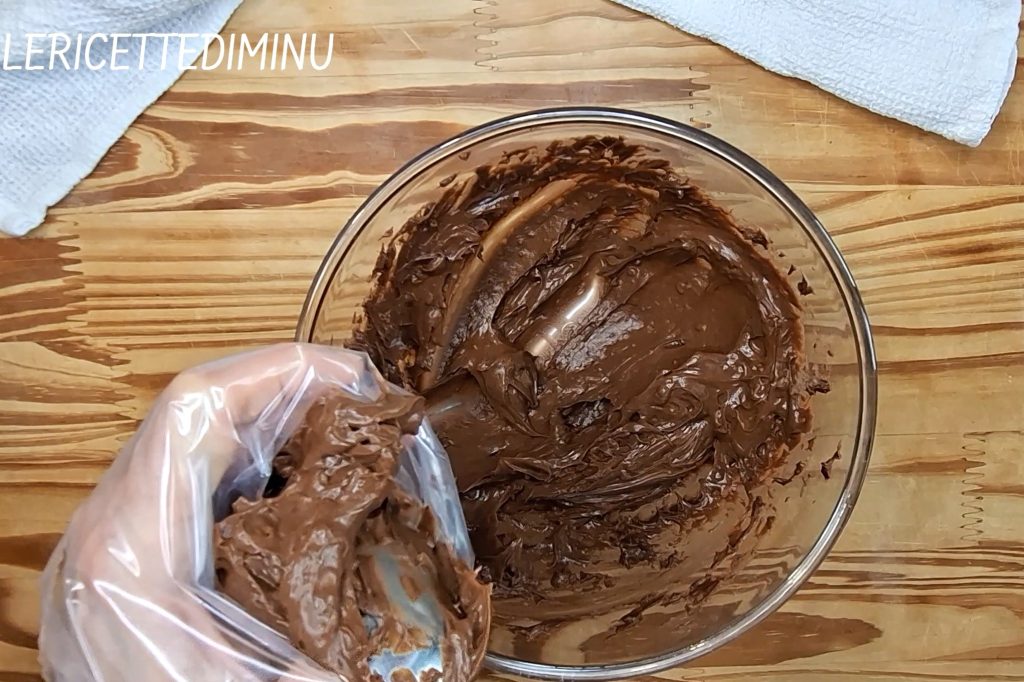The filling is made of delicious dollops of chocolate cream made with cocoa and dark chocolate, whose consistency pairs perfectly with the softness of the base.