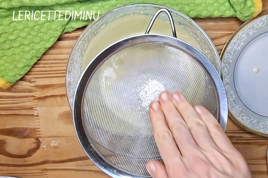 To the dry mix, gradually add the milk in a thin stream, incorporating it little by little with a wooden spoon or a whisk.