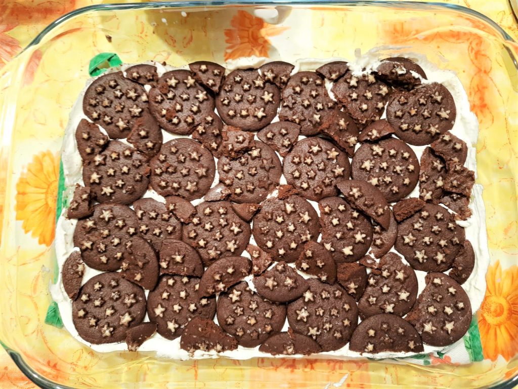 The cookies are slightly soaked and then covered by a delightful filling between layers.