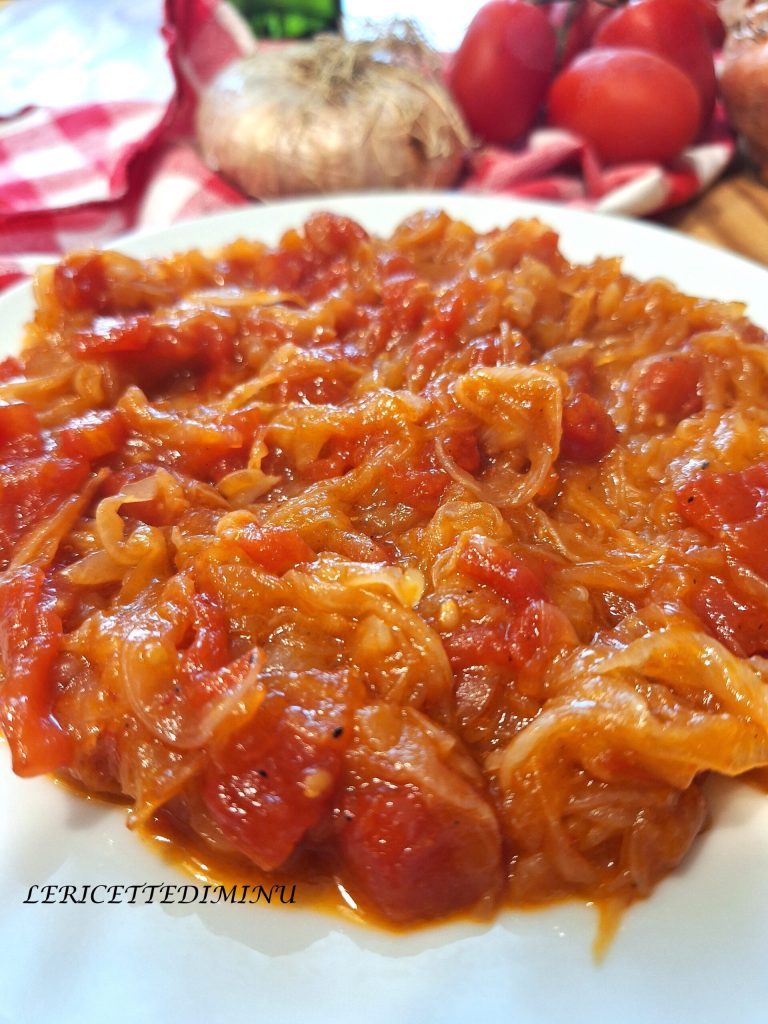 Sweet and sour onion with tomato is a widely used condiment in Sicily that excellently accompanies dishes of fish or meat, fried or roasted.
