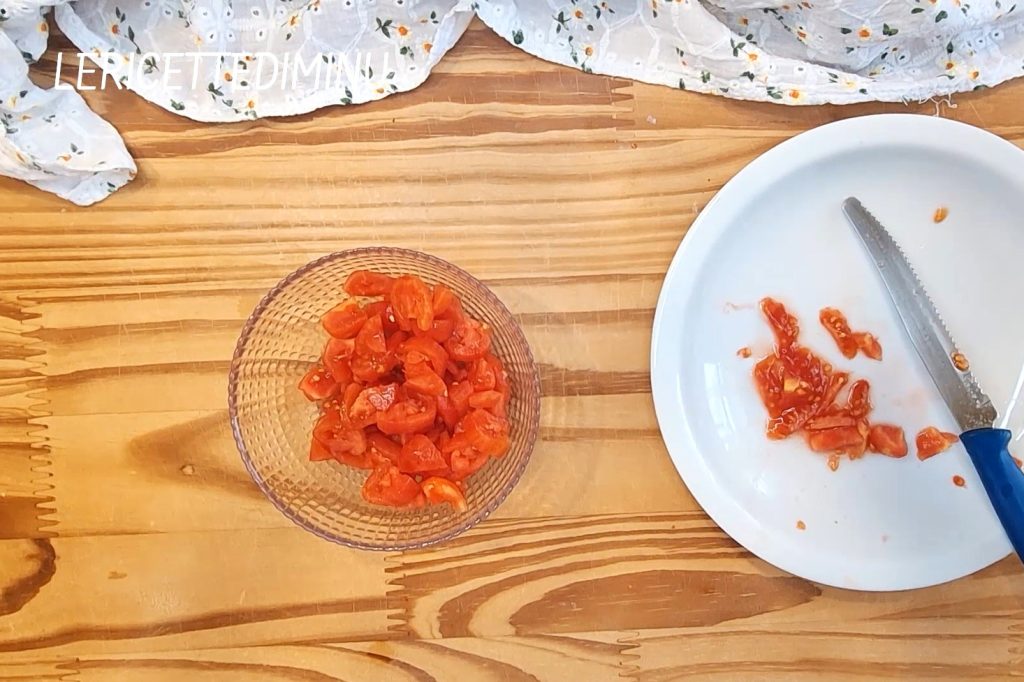 Wash the ripe tomatoes and remove the skin and seeds. Chop into pieces.