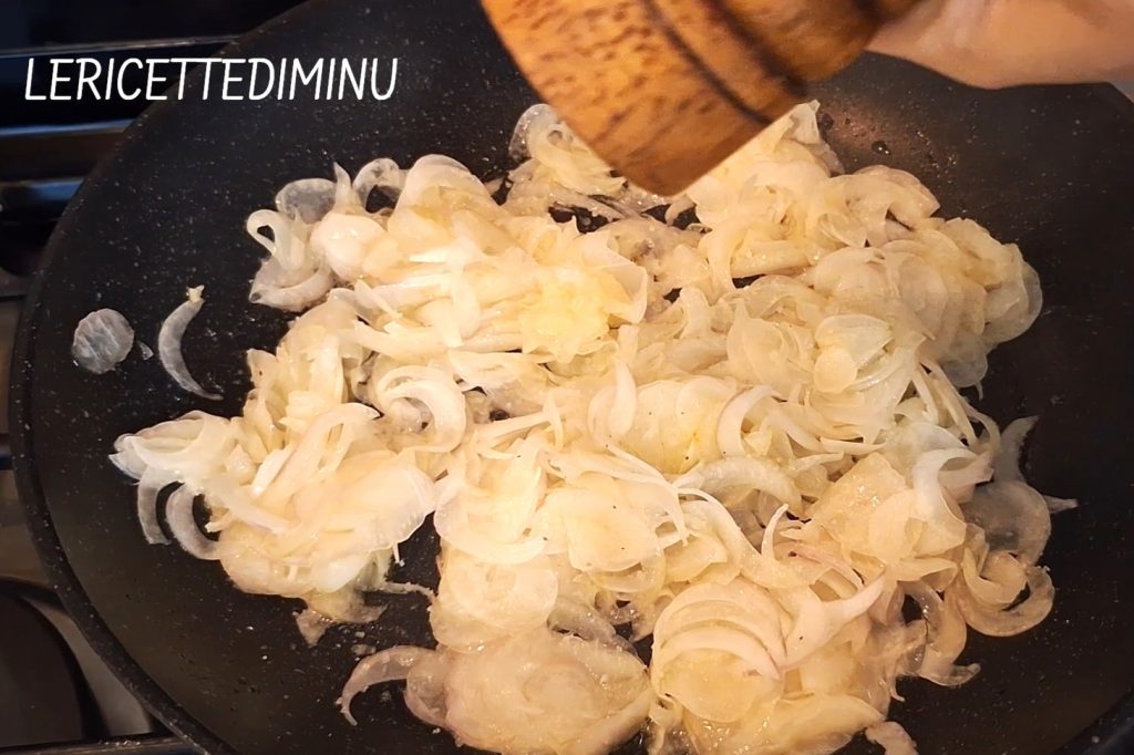 Sauté the onions for a few minutes over high heat with extra virgin olive oil. Season with salt and pepper.