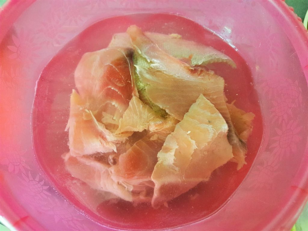 Then let it sit for a few minutes in plenty of water with half a cup of red vinegar added.