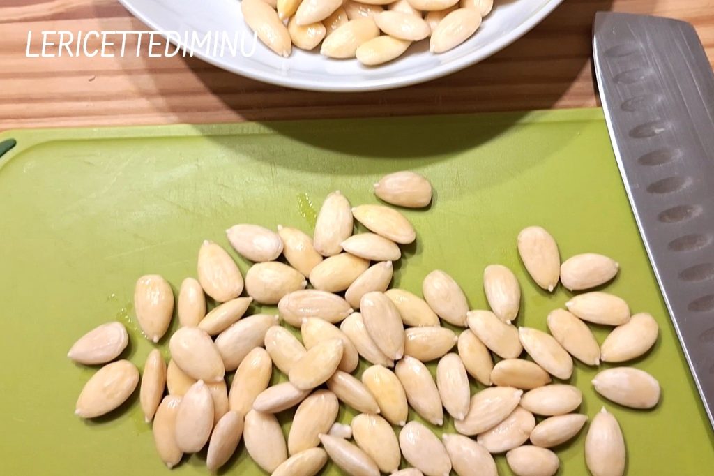 The night before, place the peeled and coarsely chopped almonds in a large bowl with 5 cups (1.2 liters) of mineral water to obtain 4 cups (1 liter) of almond milk at the end.