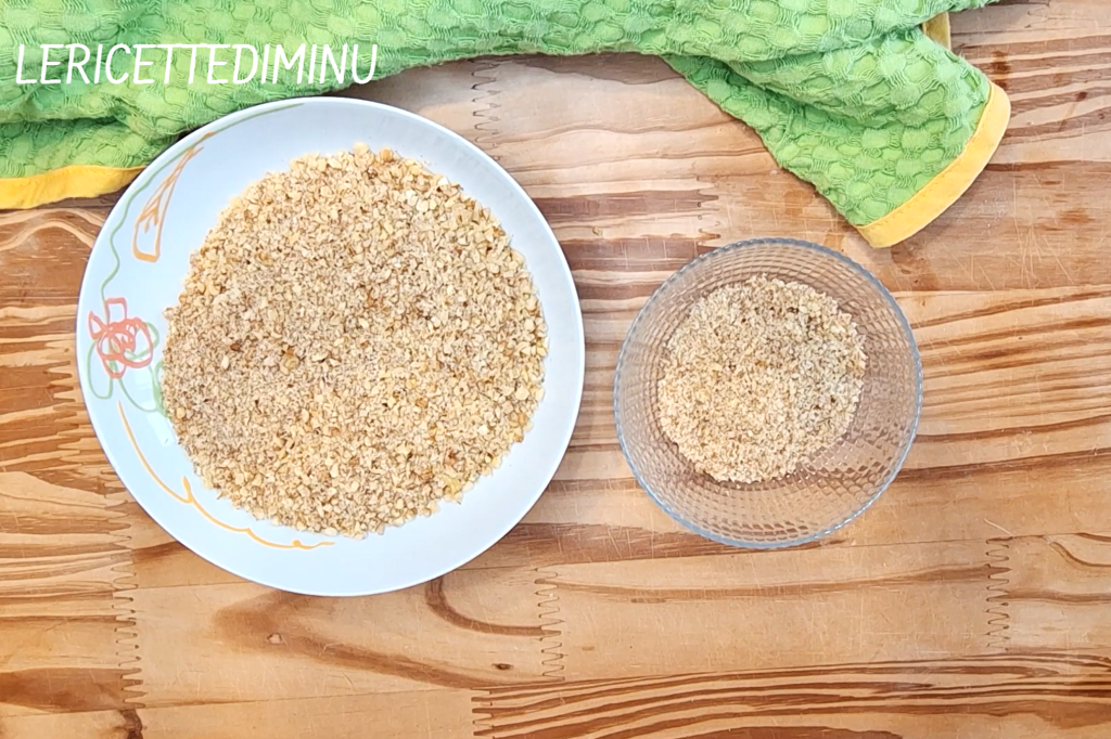 To prepare the walnut cookies, blend the walnuts not too finely or chop them with a knife.
