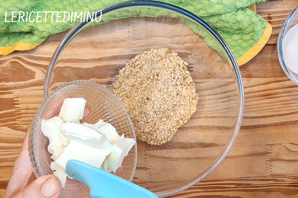 Create a cavity in the center in which to place a piece of dark chocolate, then sprinkle with walnut crumbs.