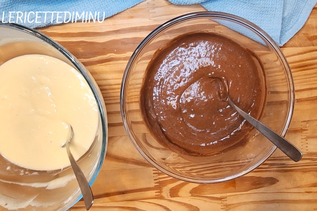 In one of the two, add the cocoa mixed separately with 1 teaspoon of sugar and enough milk to obtain a consistency similar to the other batter.