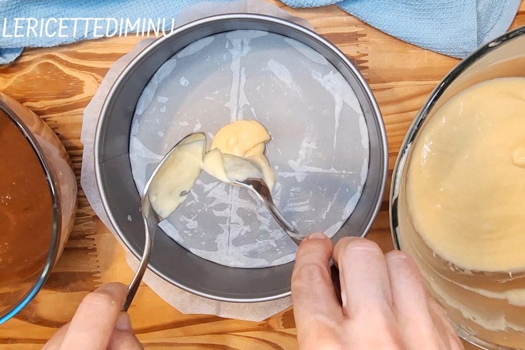 When pouring into the pan, precision is key: you can use one or more spoons for each batter or, for an even neater result, two piping bags.