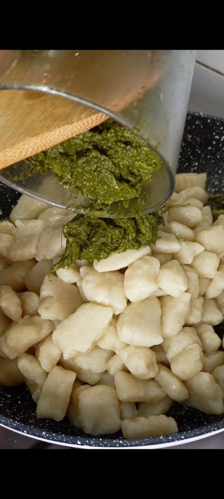 Also add the friarielli cream and, if necessary, a little gnocchi cooking water to make everything creamier. Stir in grated pecorino, olive oil, and mix well to combine all the ingredients.Serve the water and flour gnocchi with the friarielli cream.