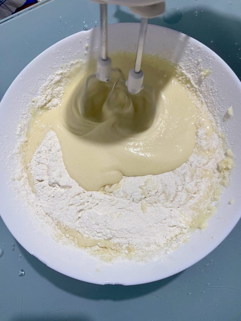 • When the wet ingredients are well blended, start gradually adding the dry ingredients, mixing with a whisk. Continue to add them in several steps until you get a smooth and homogeneous batter.
