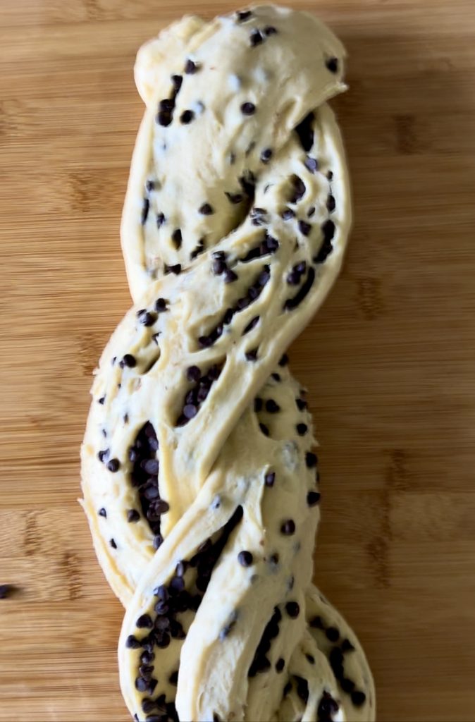Twist the two ends by intertwining them. It won’t be a difficult operation because the dough is soft and molds easily.