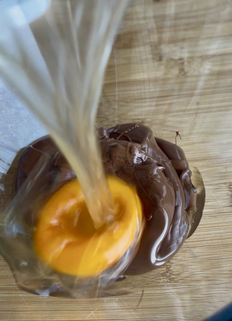 In a large bowl, place the Nutella (or the hazelnut cream you prefer).
