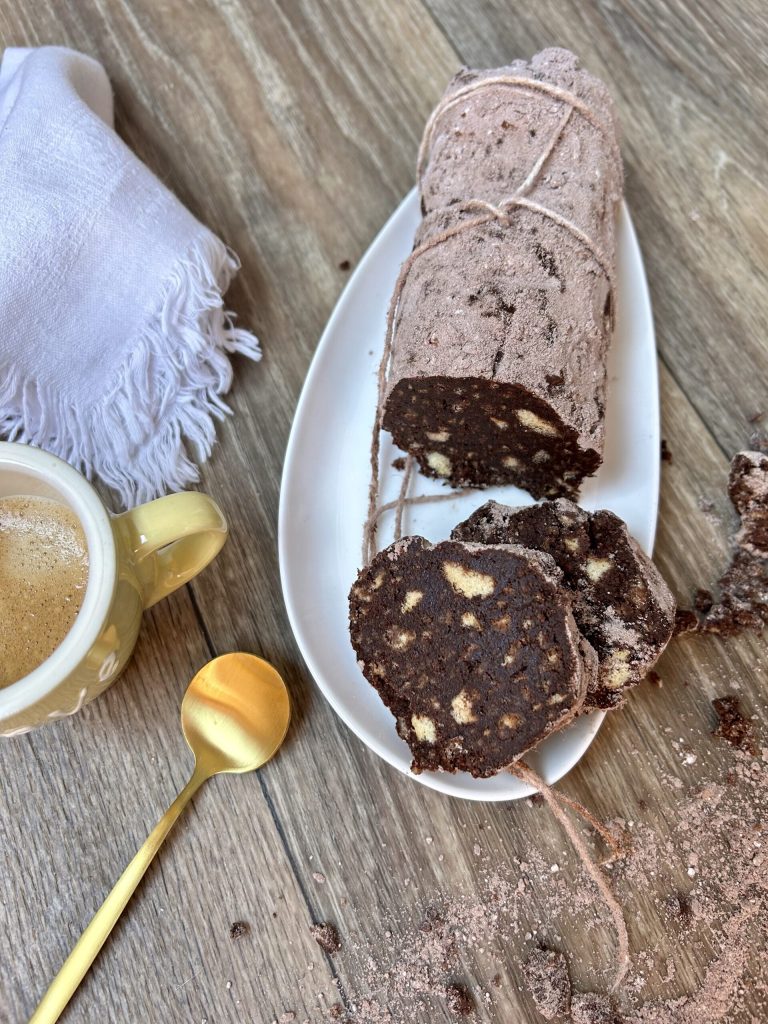 A dessert made with a few high-quality ingredients that, when combined, offer a unique flavor for an intense moment of sweetness. There are various versions of chocolate salami; this one is ideal for children because it contains no liquor or coffee.
