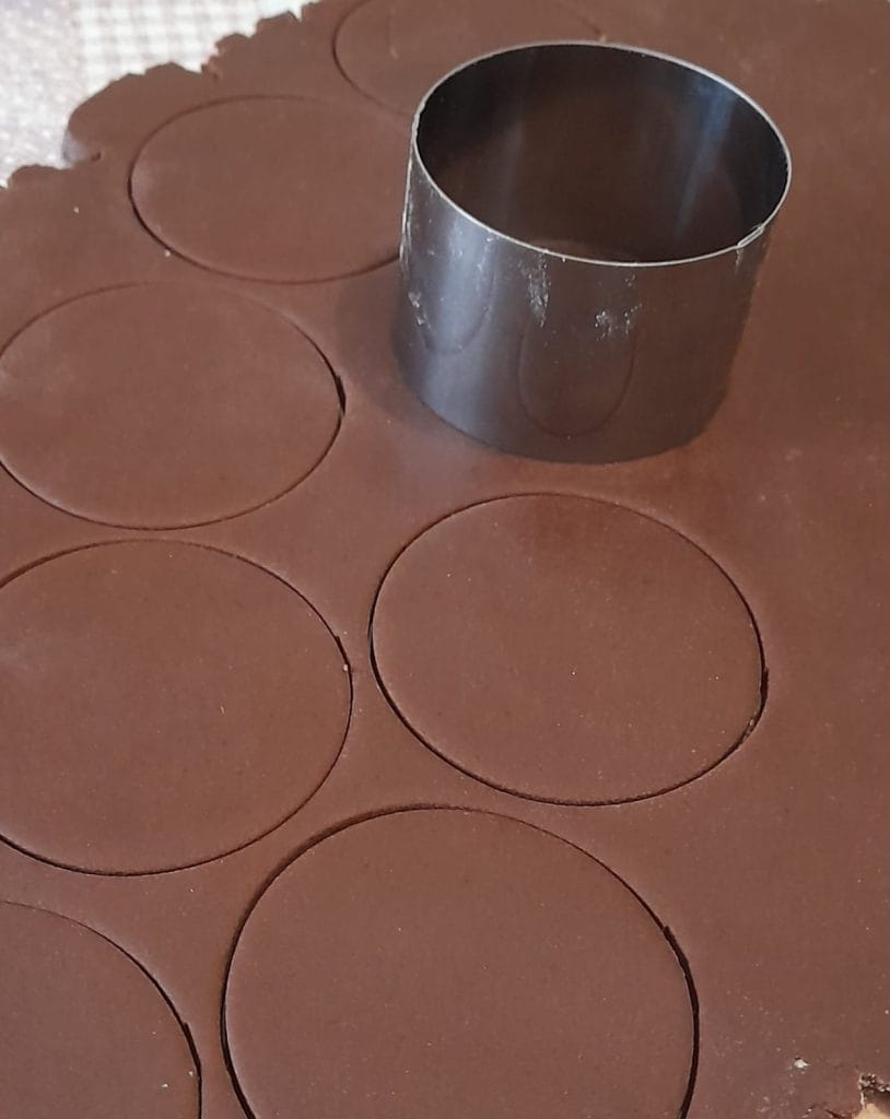 With a round pastry cutter (we used the largest one), cut out as many discs as you want to make: with these quantities, you get about 30 cookies.