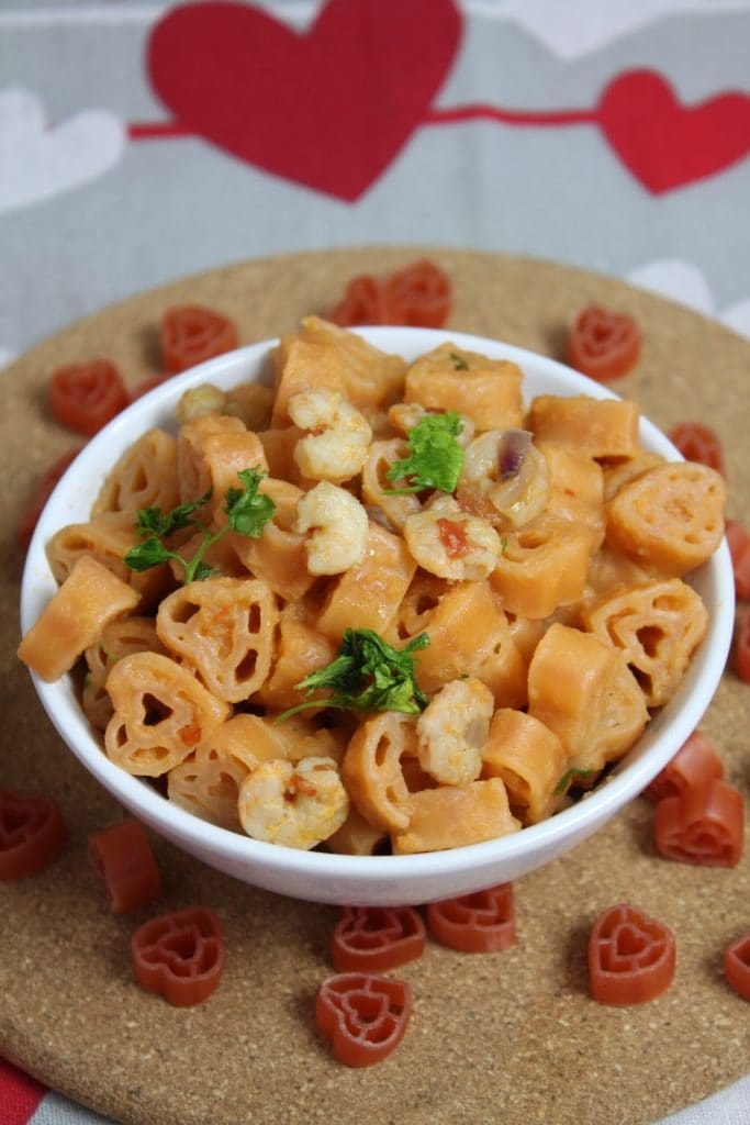 Heart-shaped Pasta with Shrimp