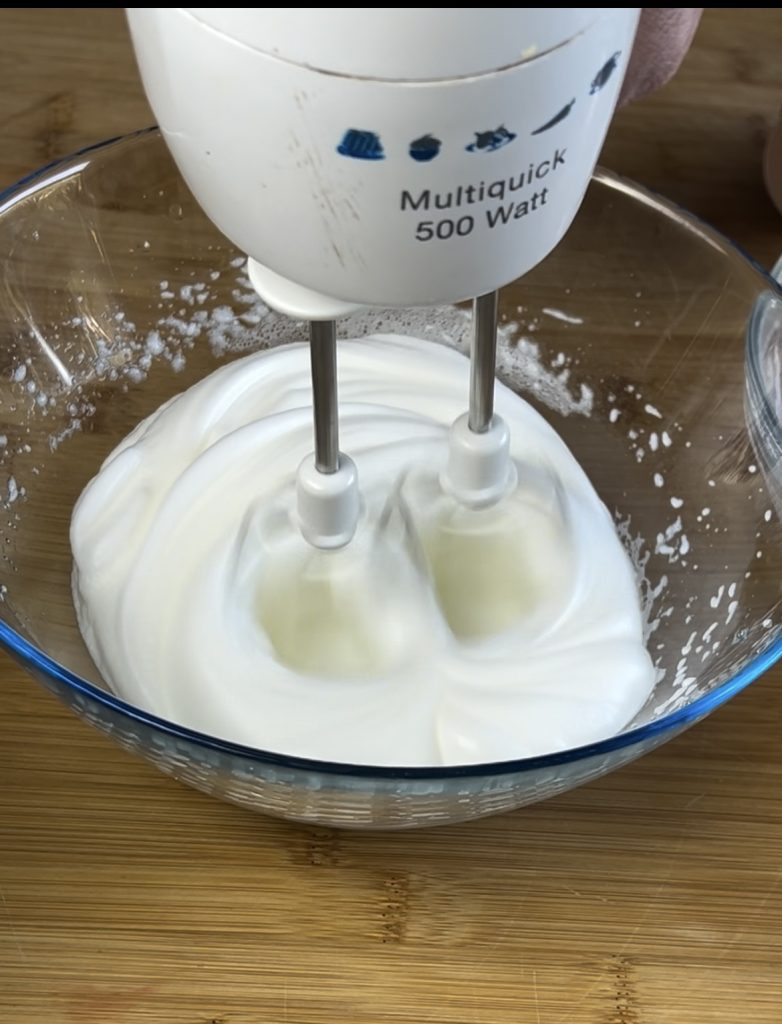 They can also be whipped by hand, but with electric beaters it’s much easier and faster!