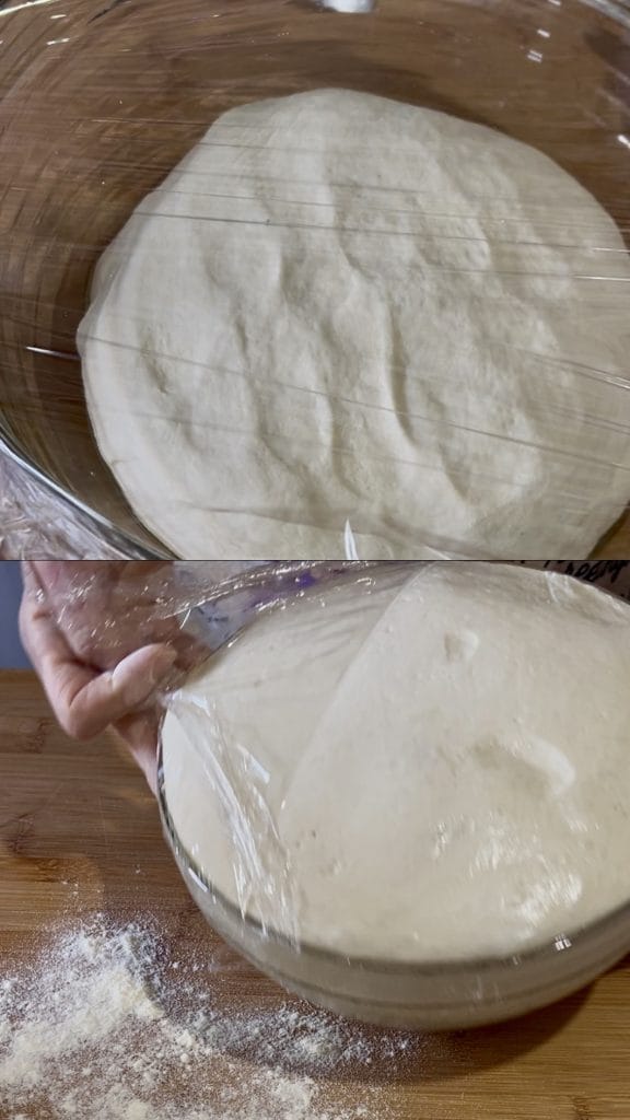 In both cases, the dough should be soft. Transfer it to a lightly floured surface and briefly work it with your hands to form a smooth ball. Place it in a lightly oiled container, cover with plastic wrap, and let it rise until doubled in volume, in a place protected from drafts.