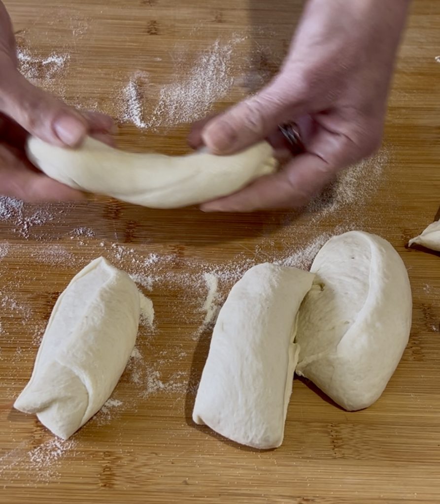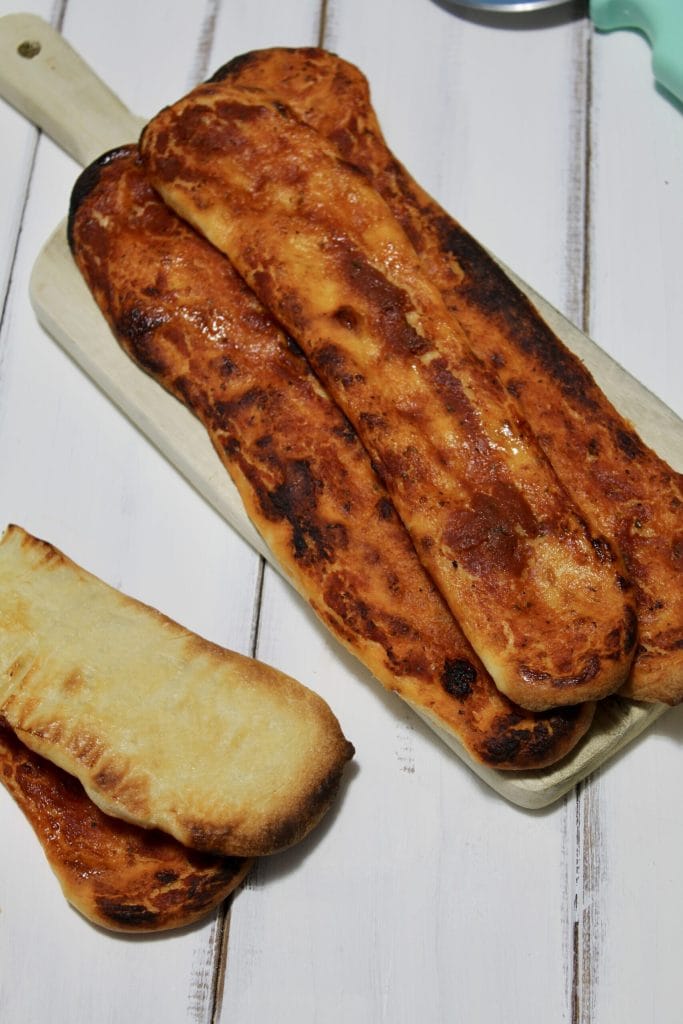 • After the resting time, roll out each loaf directly on the baking tray. Using your fingers, gently stretch the dough to give it the typical strip shape.