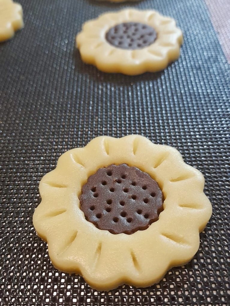 Now it’s time to bake our sunflowers. Preheat the oven to 350°F and bake the cookies for 12-15 minutes, depending on your oven.