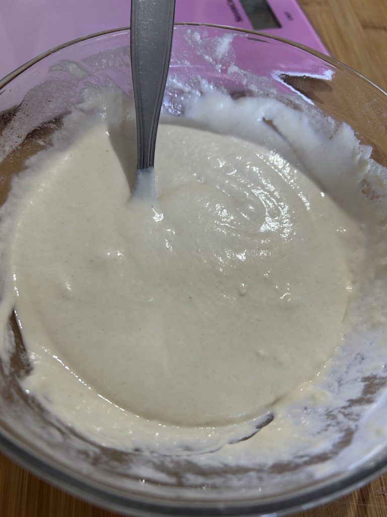 Mix thoroughly with a fork until a homogeneous batter is obtained.