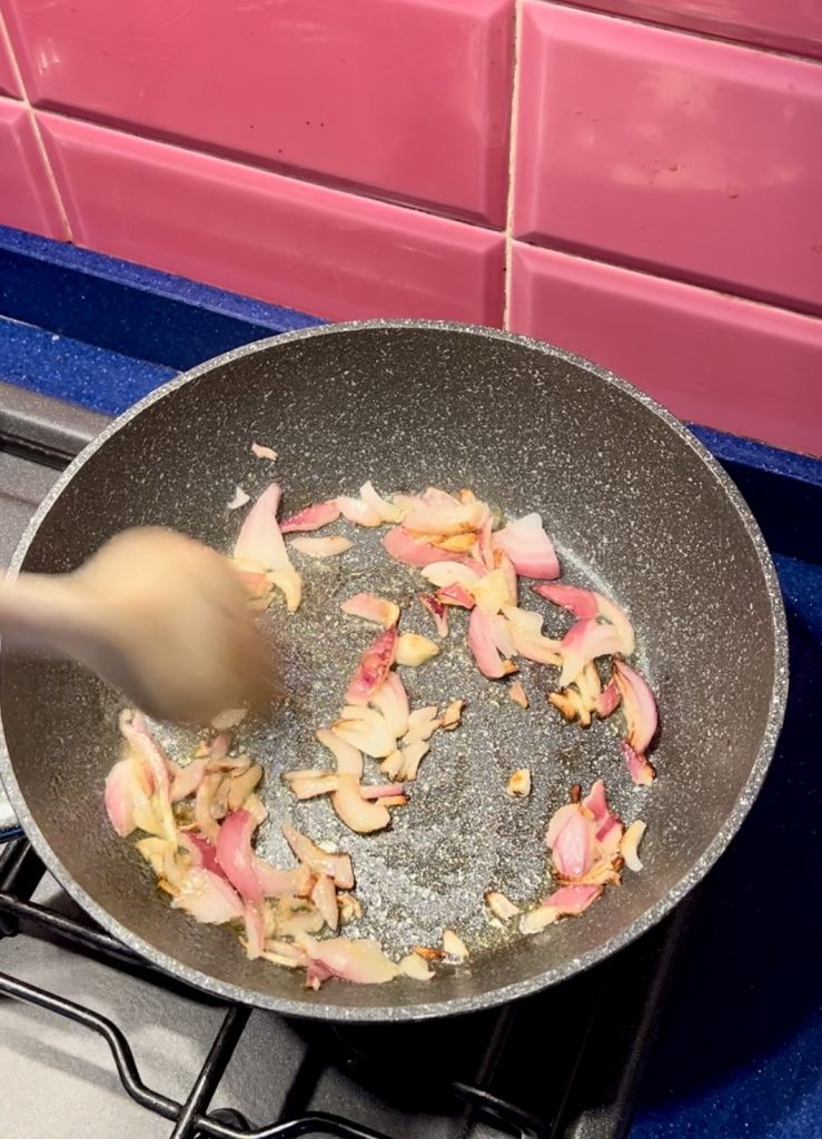 To prepare Venetian liver, I prefer using a good non-stick pan that allows me to use as little fat as possible during cooking.