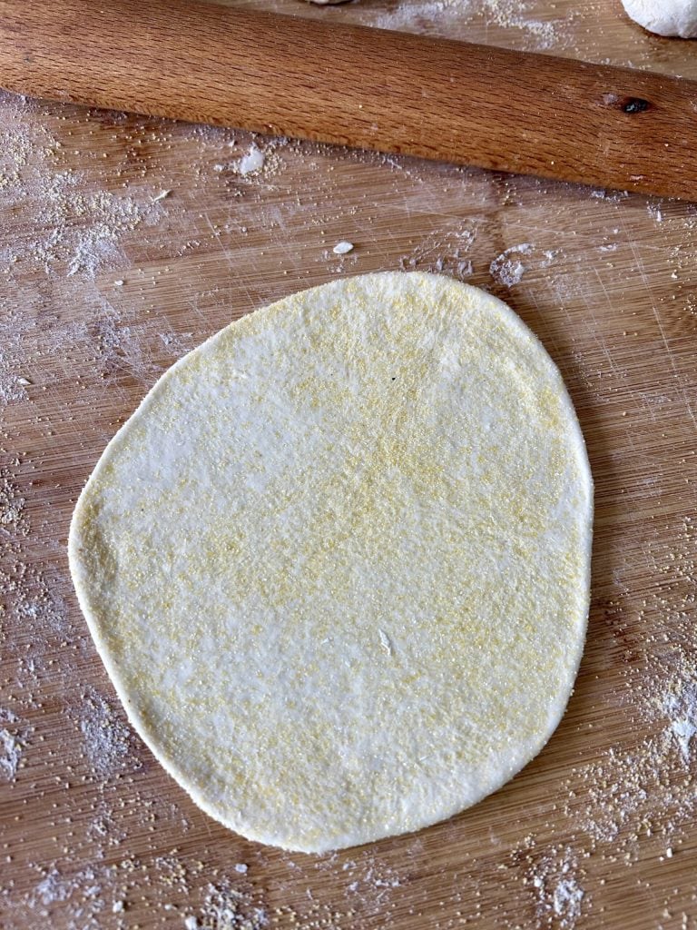 The dough is very versatile: you can use cornmeal or semolina to get more crunchiness.