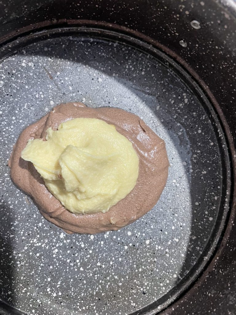 • Divide the batter into two parts and add to one of them the cocoa cream prepared previously.