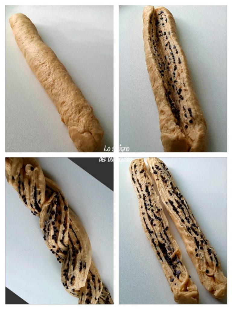 At this point, cut the roll in half lengthwise with a floured knife, turn the two halves upwards, form a braid