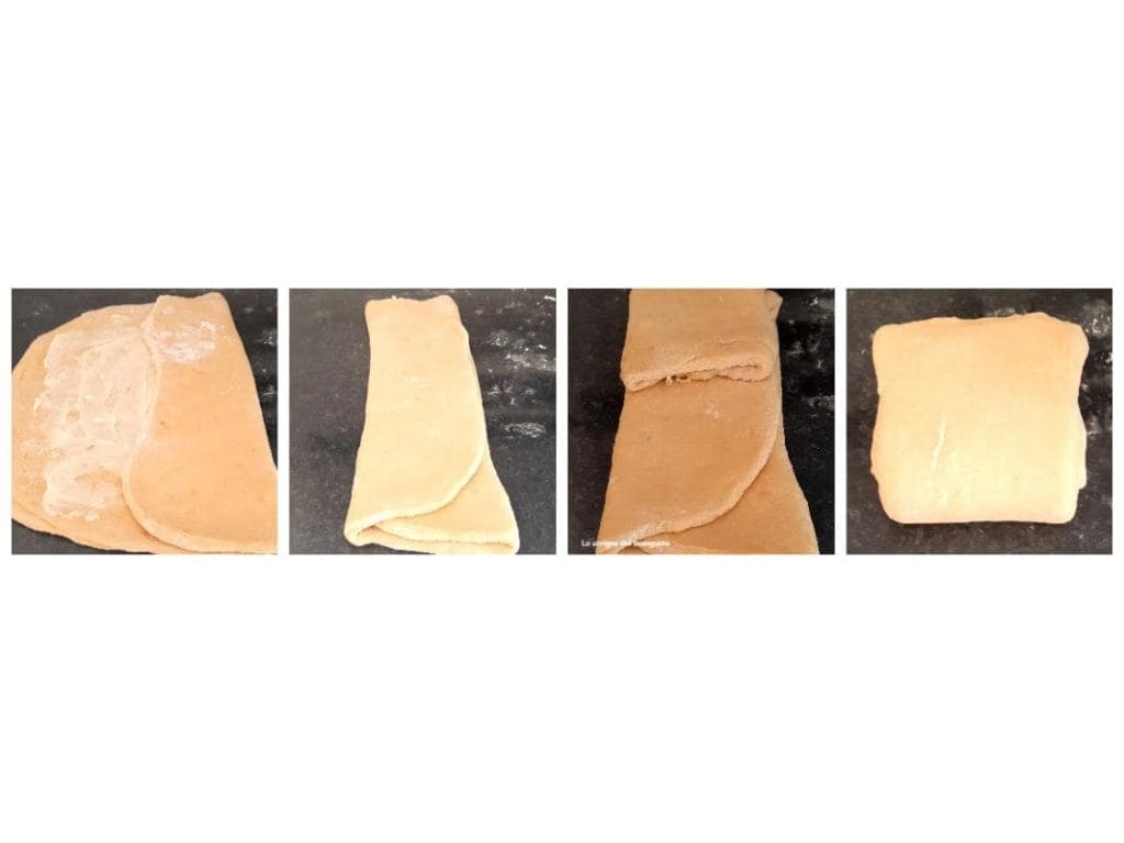 Repeat the operation 2-3 times until all the butter is used, and each time you finish the folds, roll the dough to obtain a rectangle, starting again.