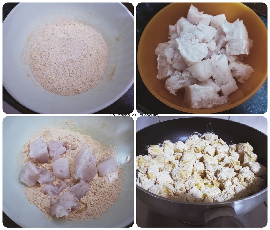 In a non-stick pan, add the extra virgin olive oil, heat it up, and add the fish. Salt to taste, let it cook over medium heat, stirring often and turning carefully to avoid breaking it too much.