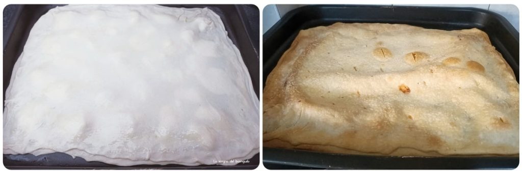 Bake in a hot oven at 392°F for about 10-15 minutes, checking the cooking; it will be done when the surface turns lightly golden.