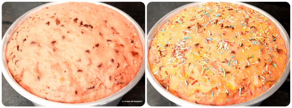 Once all the ingredients have been combined and the mixture is well worked, pour it all into the greased and floured mold and let it rise for about 8-12 hours, or until the dough reaches the edge of the mold.