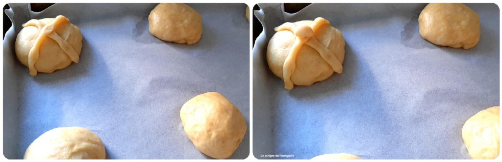 • …..place 2 crossed strips on each bun.