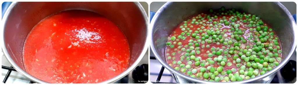 Once the cooking is complete, the peas should be with a fairly dense sauce but not a dry condiment.