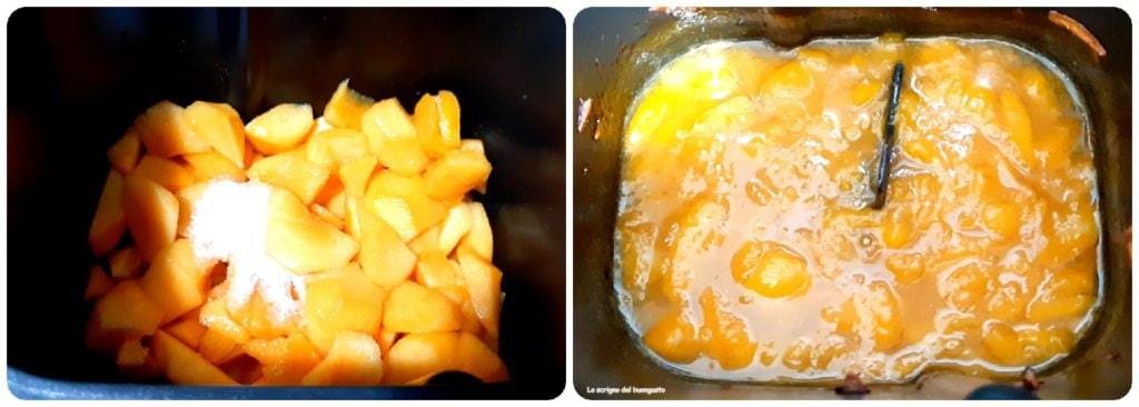 The peach jam with the bread machine, this time I prepared it with the help of my Panasonic and even though I was a bit hesitant at first, I must say it’s really a great solution, it does everything by itself and in the end, at most you just have to give it a quick blend if you want it more homogeneous.