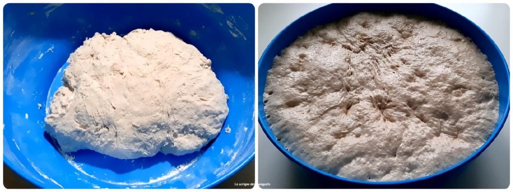 You will obtain a soft dough, still a bit sticky, but it is supposed to be like that. I kneaded everything in a bowl without using a work surface.