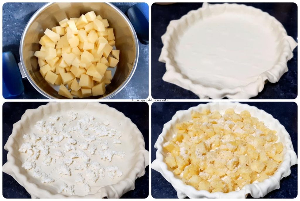If you don’t have time, you can also boil the potatoes in advance, season them with a little oil, add salt and pepper, set them aside and when you get back from work, just add a bit of oil to the potatoes and assemble the savory pie and bake it.