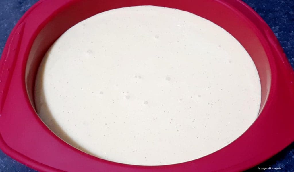 Pour the mixture into the pan and bake in a preheated oven at 340° F for about 45 minutes, checking the baking.