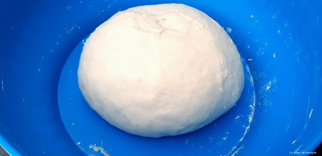 Let it rise in a container, covered with plastic wrap for at least 2 hours and in any case until doubled.