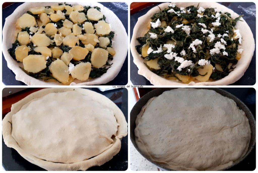 Preparation of Stuffed Pizza with Swiss Chard and Potatoes